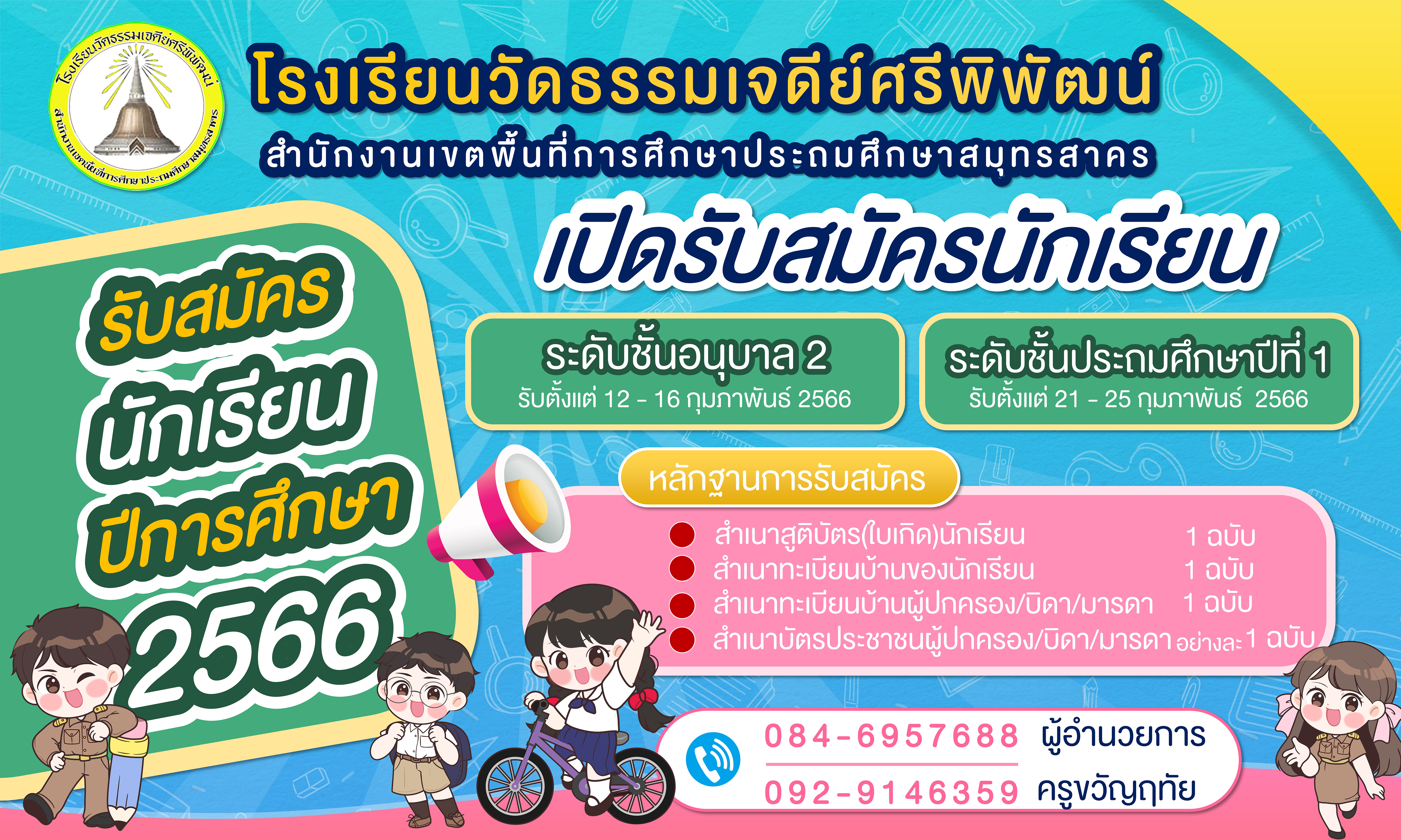โรงเรียนวัดธรรมเจดีย์ศรีพิพัฒน์ เปิดรับสมัครนักเรียน ปีการศึกษา 2566